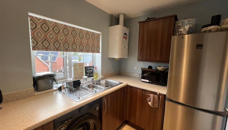 A beautifully presented top floor apartment situated in this highly popular development at West Clyst between Pinhoe and Broadclyst. This light and airy two bedroom apartment has wood effect flooring throughout and comprises of a spacious entrance hall leading to stylish kitchen complete with oven, hob, fridge freezer and washing machine. The reception room is able to easily accommodate a sitting and dining area and has wood effect flooring. The master bedroom has fitted wardrobes and an en-suite shower room and the second double bedroom has a separate family bathroom with a shower over the bath and high level storage. There is a local convenience store within walking distance as well as a local pharmacy and butchers. There is good road access to the M5, A30, Sowton and the Science Park. There is one allocated off road parking space as well as ample on road parking and a communal bike store with bike racks. EPC: C