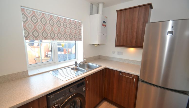 A beautifully presented top floor apartment situated in this highly popular development at West Clyst between Pinhoe and Broadclyst. This light and airy two bedroom apartment has wood effect flooring throughout and comprises of a spacious entrance hall leading to stylish kitchen complete with oven, hob, fridge freezer and washing machine. The reception room is able to easily accommodate a sitting and dining area and has wood effect flooring. The master bedroom has fitted wardrobes and an en-suite shower room and the second double bedroom has a separate family bathroom with a shower over the bath and high level storage. There is a local convenience store within walking distance as well as a local pharmacy and butchers. There is good road access to the M5, A30, Sowton and the Science Park. There is one allocated off road parking space as well as ample on road parking and a communal bike store with bike racks. EPC: C