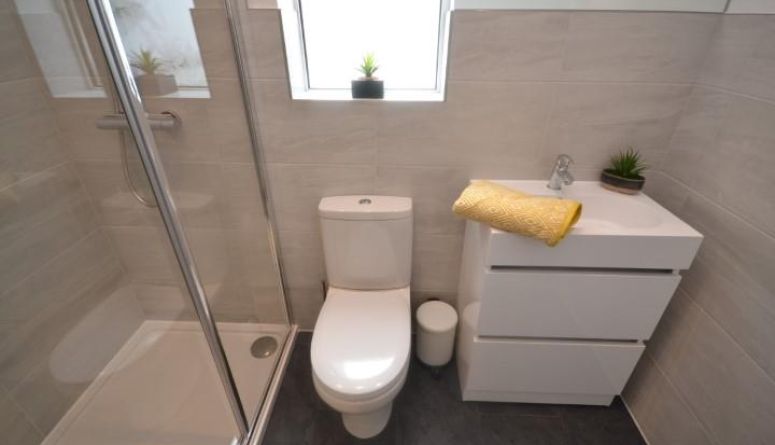 THE RENT IS INCLUSIVE OF COUNCIL TAX, GAS, ELECTRIC, WATER , 350MB BUSINESS BROADBAND, WEEKLY CLEANER, AND ALLOCATED PARKING SPACE. One room available in this six bed professional house share. The room is a spacious double on the ground floor with a privacy giving skylight window to the rear, a chest of draws, hanging rail and two bedside tables. A beautiful property kept to a very high standard and generously proportioned throughout. On the ground floor there is an open plan living kitchen space with TV, breakfast bar and sofa. The kitchen is equipped with oven, hob, microwave, dishwasher and fridge, the washing machine and an American fridge freezer are in a utility space off the kitchen where there is access to a stylish ground floor shower room with WC and vanity basin. There is also a tumble dryer located in the garage to the rear of the property.