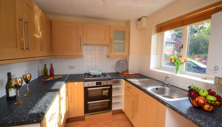 A two bedroom terraced house in Wilton Way, Barton Grange, EX1 3UH. This modern terrace offers a kitchen with oven and hob with space for a washing machine and fridge freezer. The dining/living area, 5.22 x 3m approx. has patio doors leading to a rear lawned garden with patio. The master bedroom, 3.96 x 2.60, has fitted wardrobes and overlooks the garden. The second bedroom, 3.20 x 2.04 approx, is situated at the front of the house. The bathroom has an electric shower over the bath. There is a garage with electric light and socket situated at the rear of the property with pedestrian access through the garden. Barton Grange is convenient for the Met Office, Sowton, Exeter Airport and major link roads.
