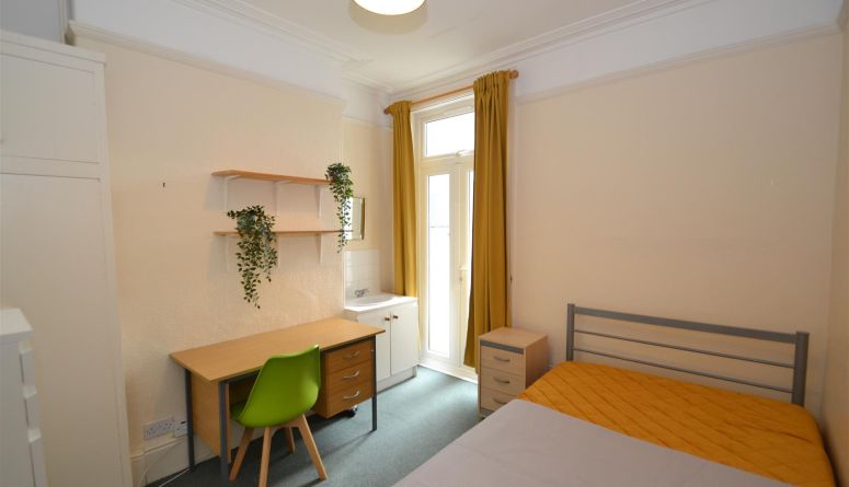 £130 pppw. Four double study bedrooms in a well proportioned and light terraced house. This student home offers entrance hall, spacious bay fronted sitting room with TV and one double study bedroom on the ground floor with French doors leading to the garden. The dining room is situated towards to rear and leads to the kitchen which overlooks the rear garden. The white goods include fridge freezer, oven, hob, washing machine and tumble dryer. There are three further study double bedrooms and the shower room plus separate WC on the first floor. All bedrooms come with their own wash basin. Outside is a paved garden and bicycle rack that can be accessed via the rear alley. Although TV is included, the TV licence is not. Guarantor required. EPC: C