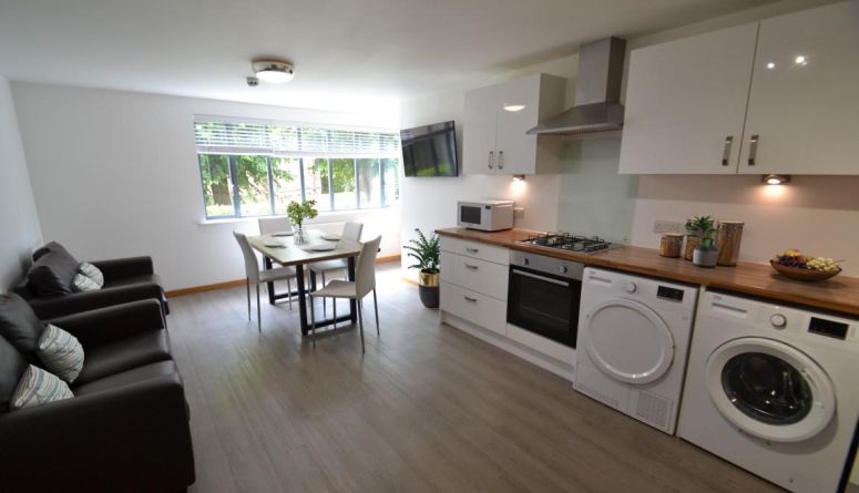 Thornton Court is a modern building, comprising of nine separate student apartments, situated in its own secure gated grounds, within a very close proximity to the University campus (running parallel to Pennsylvania Road) and easy access to the city. The rent includes all utility bills and the added benefit of a dedicated uncontended Wi-Fi access. This spacious, light and airy four-bedroom apartment is situated on the ground floor with all four en-suite double bedrooms off the main hall and all bedrooms have their own personal intercom for the main block door. The open plan sitting, dining and kitchen makes for an excellent social space and includes a Smart TV. The kitchen offers an American fridge freezer, dishwasher, washer dryer, hob and oven. This is a student home that needs to be viewed to be appreciated. EPC: B